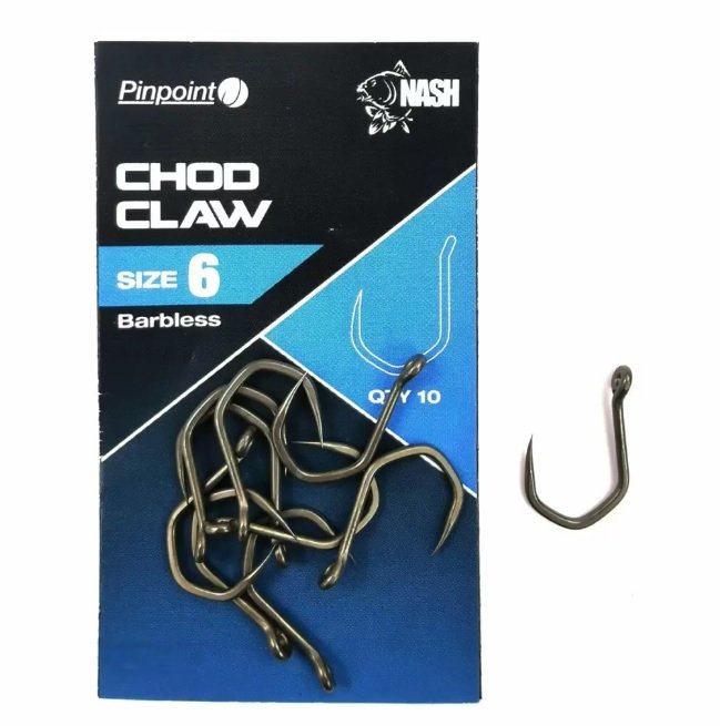 A borotvaéles Pinpoint Claw horgok világhírű akadási tulajdonságai és tartása most elérhető egy kifele fordított szemmel a pop-up szerelékekhez. A széles, szögletes öböl és megnövelt horogszem-átmérő a merevebb előkékhez az legagresszívabb és megbízhatóbb formává teszik a Chod Claw-t a chod és D-rig előkékhez.