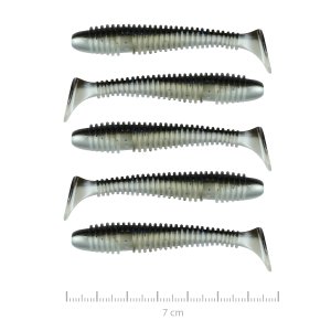 Speciális nagy szakitószilárdságú, puha szilikon anyagból készült. Redkívül intenzív farokmozgású még lassú vontatásnál is. Többfajta pergetési technikához alkalmazható.