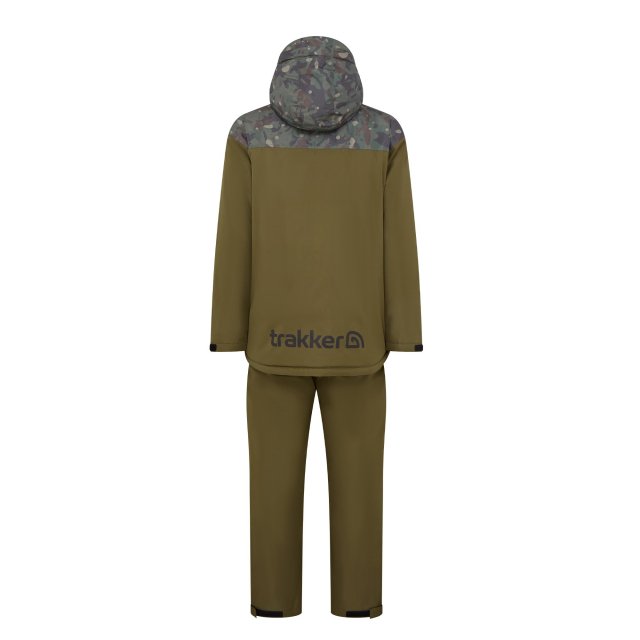Vízálló, 5000 mm-es hidrosztatikus fejszövetből készült, teljesen ragasztott varratokkal a tökéletes vízállóság érdekében - A teljesen szigetelt kabát és nadrág kényelmet és meleget biztosít - Állítható kapucni és szegély a fokozott védelemért az időjárás viszontagságaival szemben - Megerősített térdrészlet a nagyobb tartósság érdekében - Trakker zöld színben, terepszínű részletekkel, egyedi terepszínű nyomattal